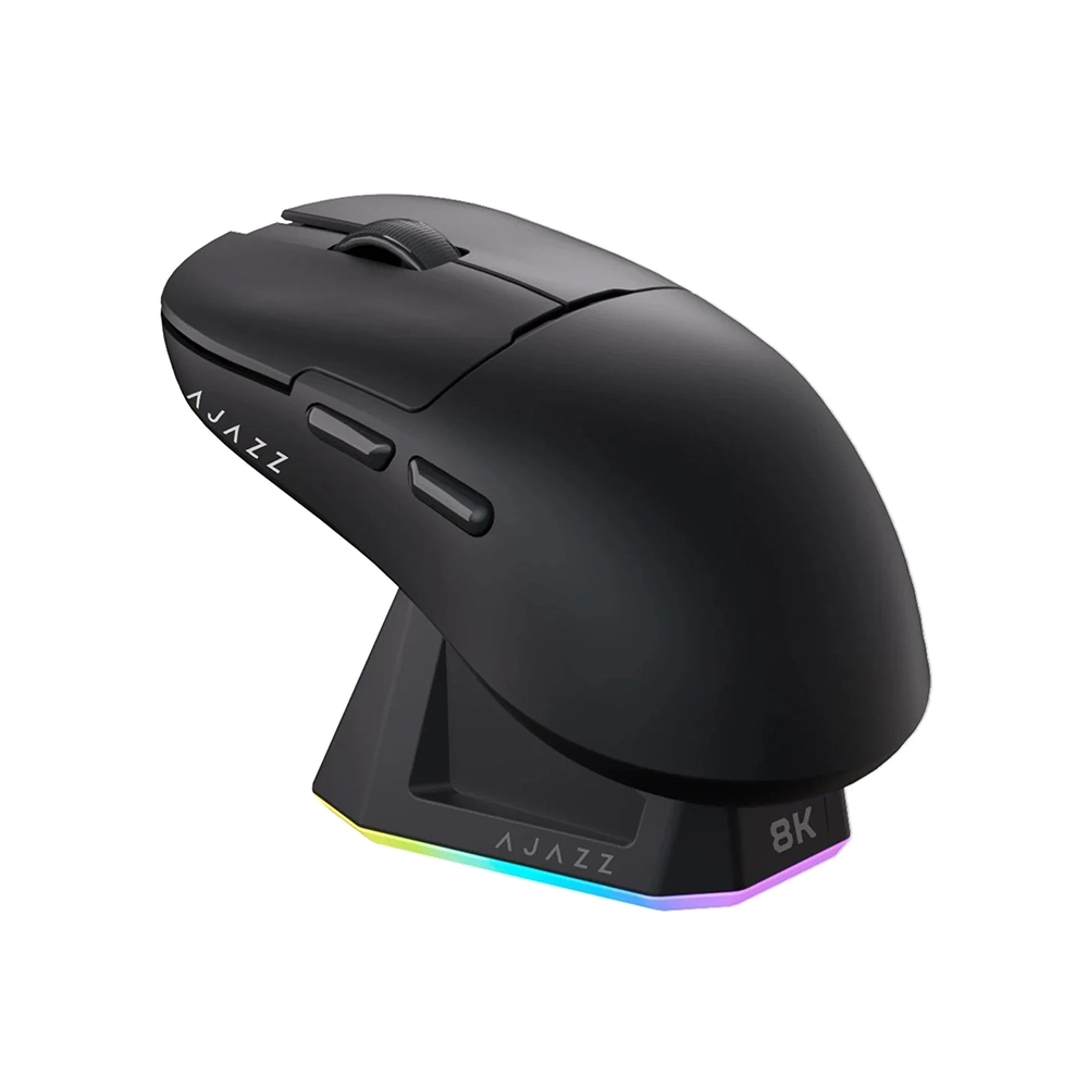 The AJ159 Pro supports tri-mode connectivity including 2.4GHz wireless, Bluetooth, and wired USB-C mode, making it versatile for both gaming and daily use. It also features a magnetic RGB charging dock that works as an 8K receiver while keeping your mouse powered and ready.